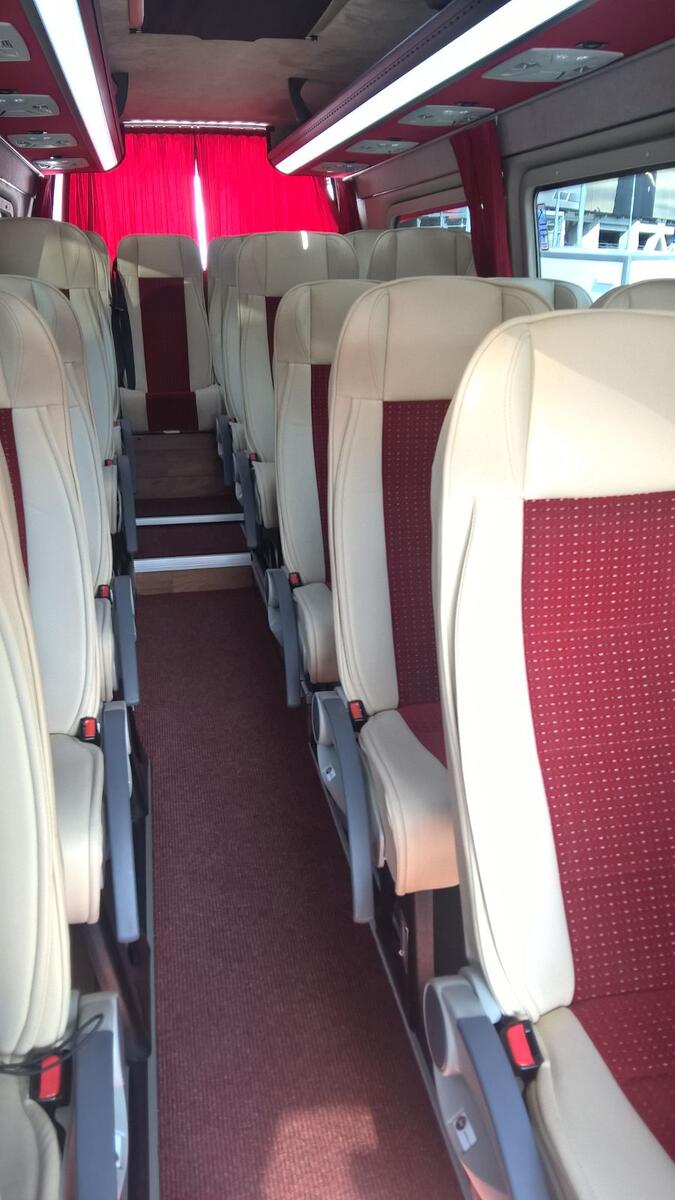 Nabízíme dopravu minibusem Mercedes Benz Sprinter Expedition 519 CDI Long Expedition LUXURY CLASS 2016 s kapacitou 20 míst k sezení + řidič.