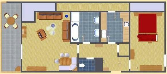 Apartmán D Beethoven - pro 4 a 5 osob – 90 qm – ložnice pro 2-3 osoby, obytná denní místnost s roztahovacím gaučem, kuchyně, jídelní kout, koupelna, předsíň, WC, komora, balkón na jižní stranu.