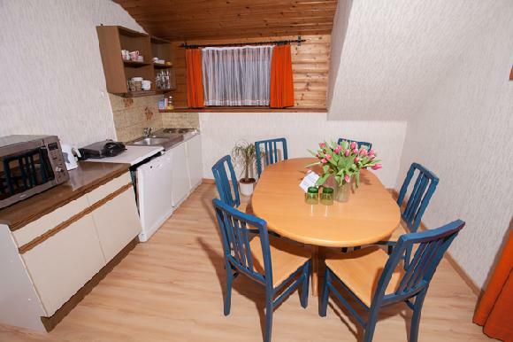 Apartmán B - pro 6 osob – 2x ložnice, obytná denní místnost s roztahovací sedací soupravou, kuchyňská linka, koupelna, WC, balkón, SAT TV, myčka nádobí. zde může být jedna z ložnic s postelemi "na patro".